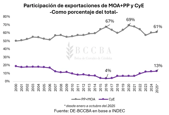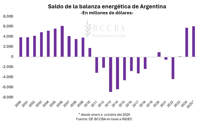 El complejo agroindustrial adquiere una relevancia crítica como sostén del saldo comercial en períodos de menor producción energética o mayor demanda interna, cuando el país recurre a mayores importaciones de combustibles como gas o gasoil.