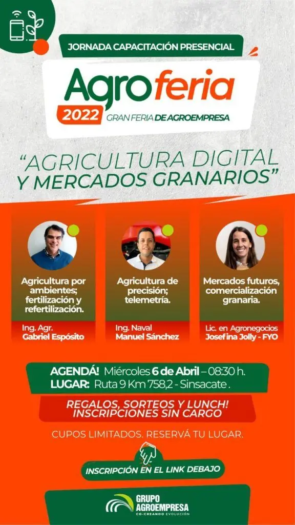 La Agricultura de Precisión y telemetría, los Mercados a Futuro y la Agricultura por Ambientes, serán los temas principales que abordarán especialistas en la Jornada de Capacitación que Agroempresa realizará este miércoles 6 de abril, desde las 8.30 hs y de manera presencial, en su casa Central de Sinsacate.