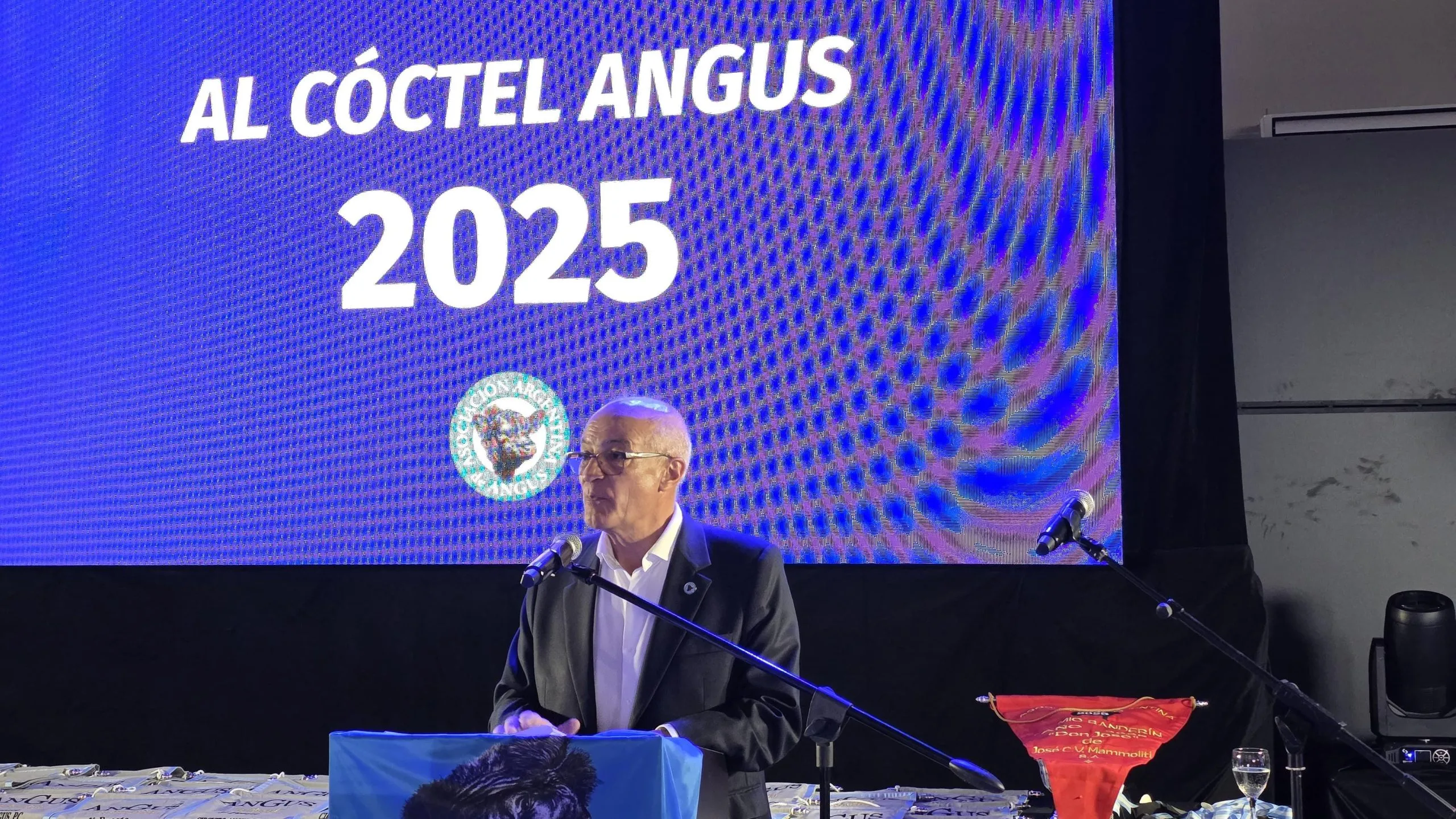 El acto fue inaugurado por Amadeo Derito, presidente de la Asociación, con un mensaje marcado por la emoción y el agradecimiento. Derito recordó que el cóctel del año pasado se dio en circunstancias difíciles debido a la internación del entonces presidente Alfonso Bustillo, a quien celebró ver ahora plenamente recuperado y presente en el evento. El presidente extendió su agradecimiento a los pioneros y a los cabañeros actuales que han elevado la genética Angus hasta convertirla en un sello de calidad reconocido a nivel mundial. También expresó su gratitud a los socios, al personal de campo, a los consignatarios, a los frigoríficos y exportadores que han posicionado la Carne Angus Certificada en los mercados de mayor valor, y al periodismo agropecuario por su constante presencia.