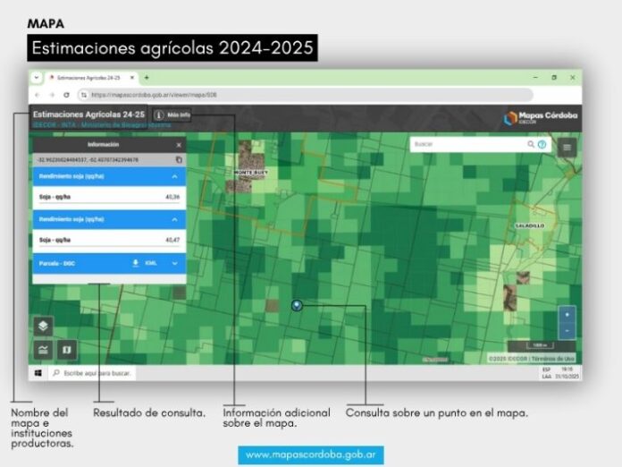 La provincia de Córdoba ha hecho público el nuevo mapa de Estimaciones Agrícolas 24-25, una herramienta fundamental que detalla la distribución espacial de los rendimientos de soja y maíz en las 7.970.000 hectáreas cultivables del territorio. Esta es la quinta edición de un recurso clave para la actividad agrícola, fruto de un programa sostenido desde 2020 que enfatiza la innovación tecnológica y la articulación interinstitucional.