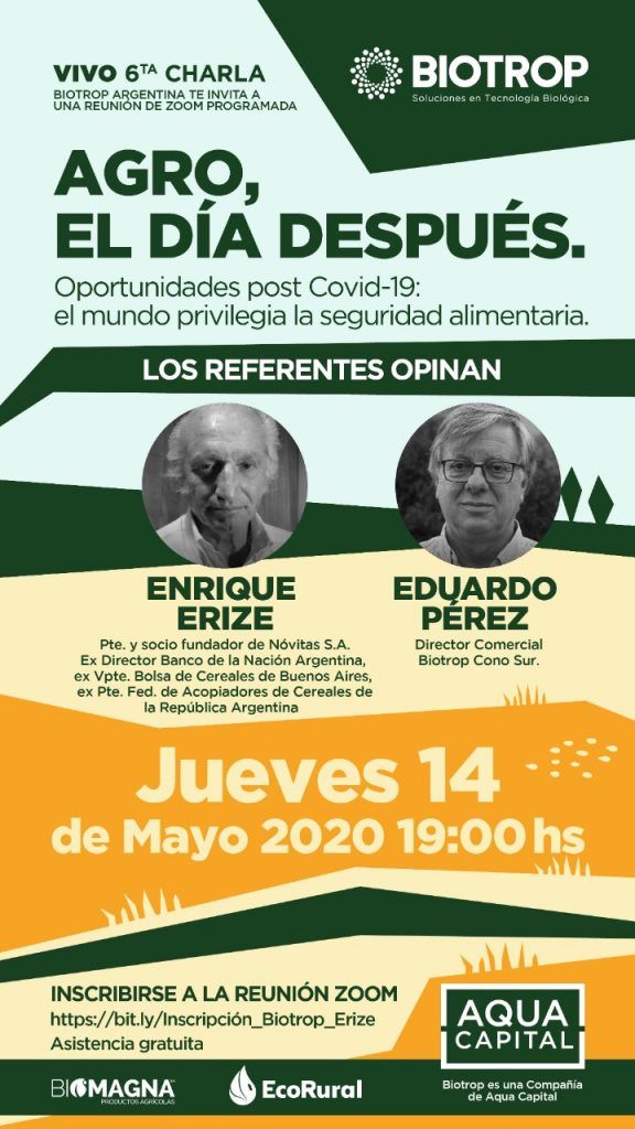 La firma Biotrop organiza una nueva charla para analizar el escenario de la pandemia y los efectos en la economía y en el agro. Bajo el lema «Agro, El Día Después», el especialista Enrique Erize analizará Oportunidades Post Covid 19, el mundo priveligecia la seguridad alimentaria.