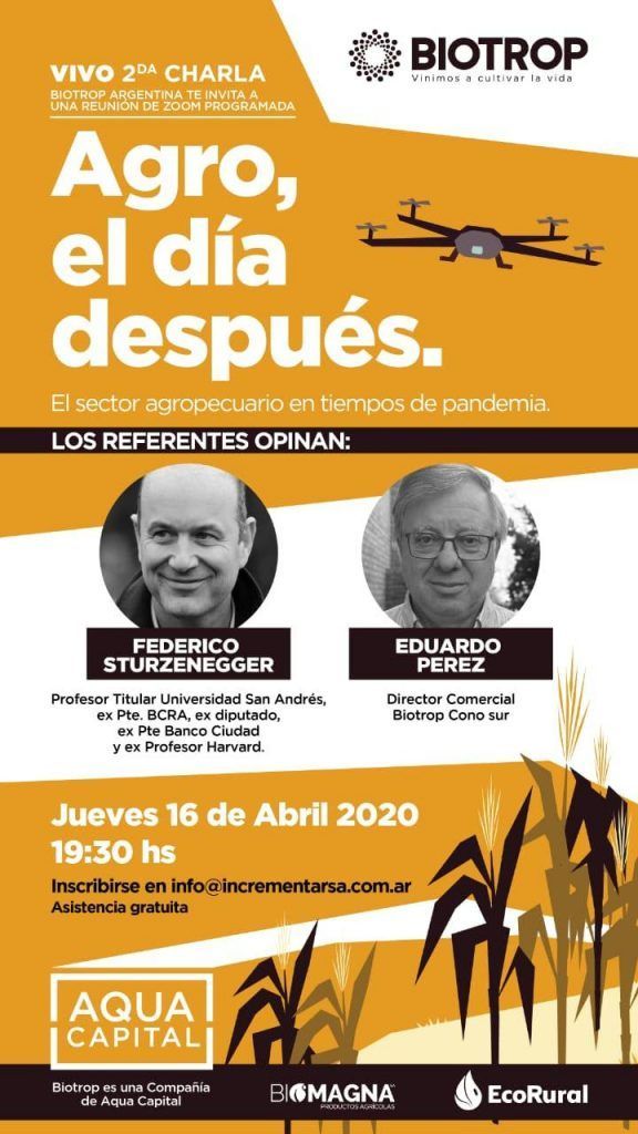La conversación estará a cargo de Eduardo Pérez, Director Comercial de Biotrop CONO SUR y como invitado especial el economista Federico Sturzenegger.