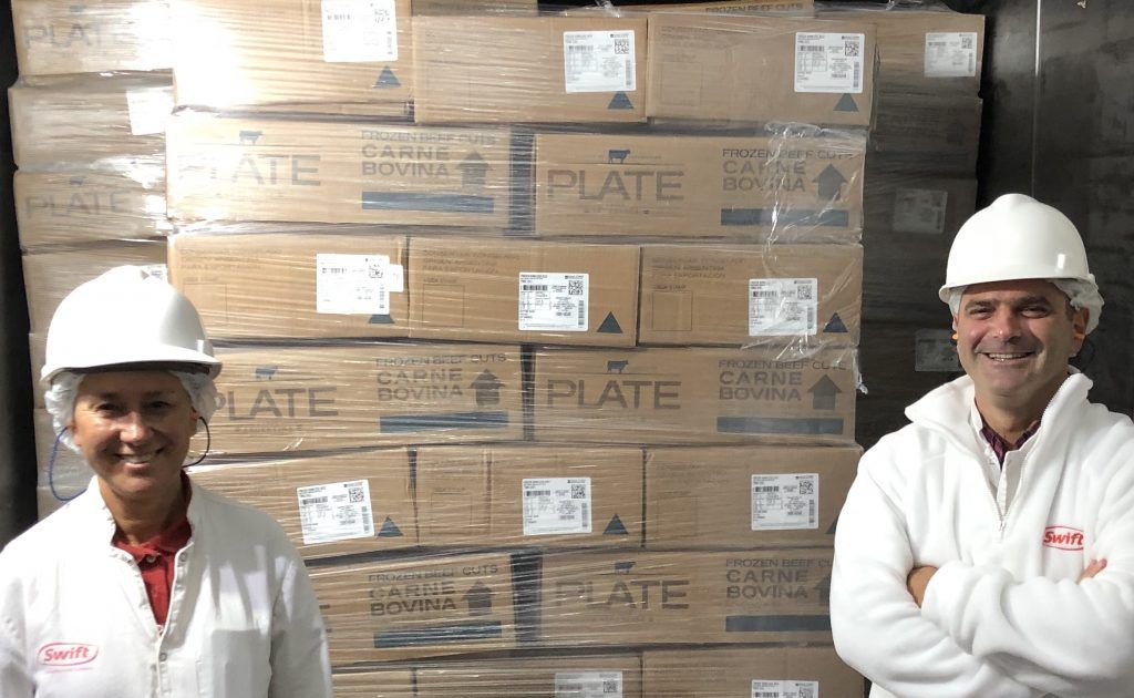 El presente envío de cortes cárnicos que permitirán a los consumidores norteamericanos apreciar la calidad y el valor agregado de nuestras carnes, corresponde a la empresa Swift Argentina.