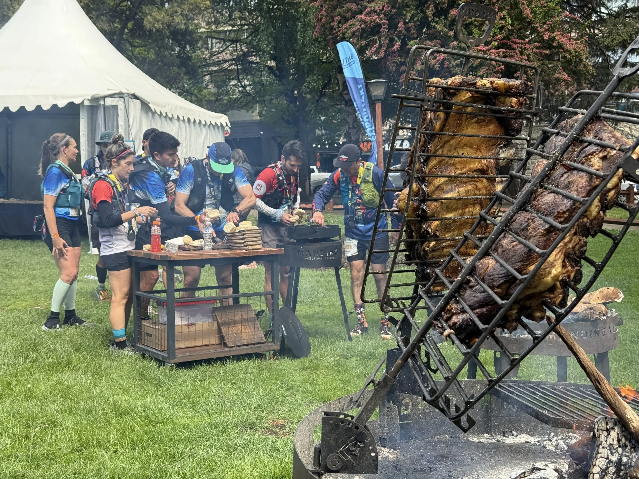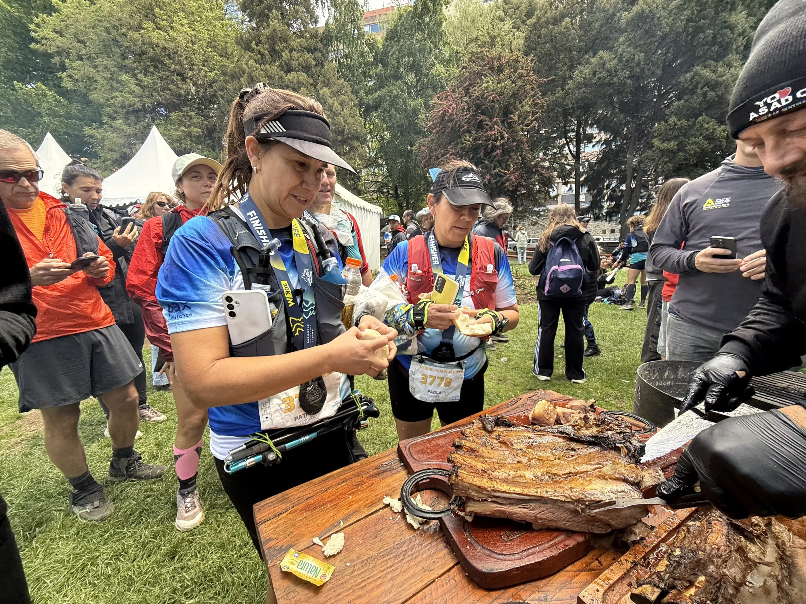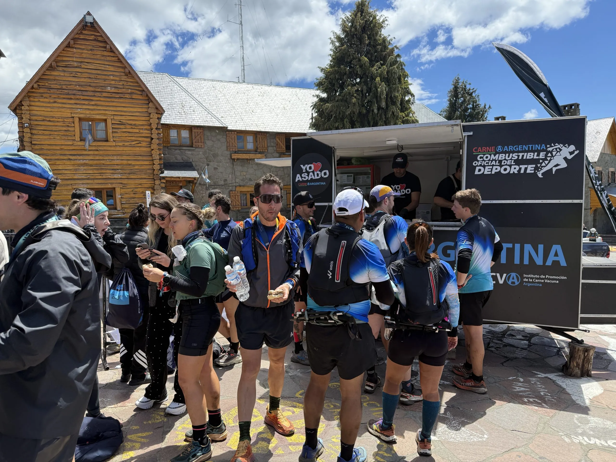Al cruzar la meta, los atletas fueron recibidos con una hamburguesa elaborada en el food truck de Carne Argentina. En el área de recuperación, esencial tras el esfuerzo, se ofrecieron costillares a la llama, sándwiches de picaña y colita de cuadril, ideales para reponer energías.