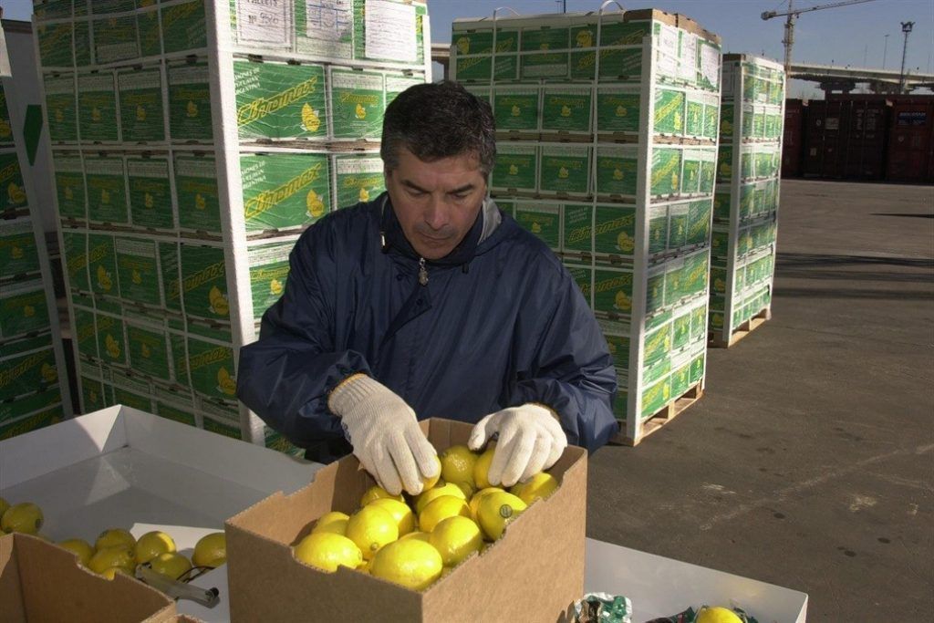 Un técnico del Senasa revisa un cargamento.