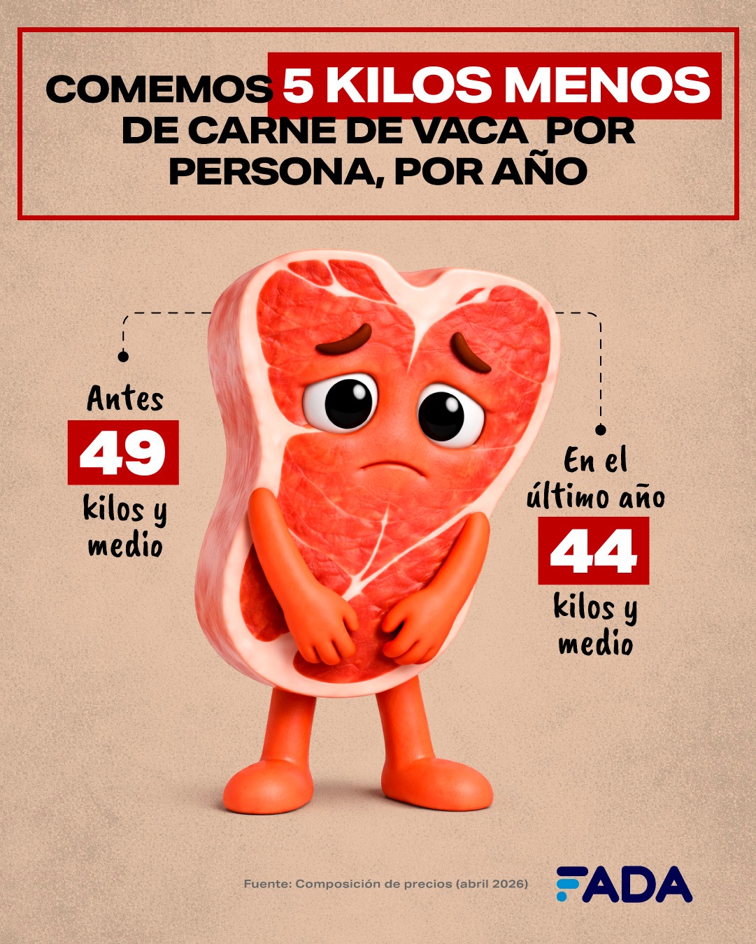 El escenario económico actual y los conflictos internacionales están transformando los hábitos alimenticios en Argentina. Según el último informe de la Fundación Agropecuaria para el Desarrollo de Argentina (FADA), los consumidores han modificado su dieta debido a la disparidad de aumentos entre los productos: mientras la carne de vaca aumentó un 64% en el último año, el cerdo subió un 25% y los lácteos un 13%.
