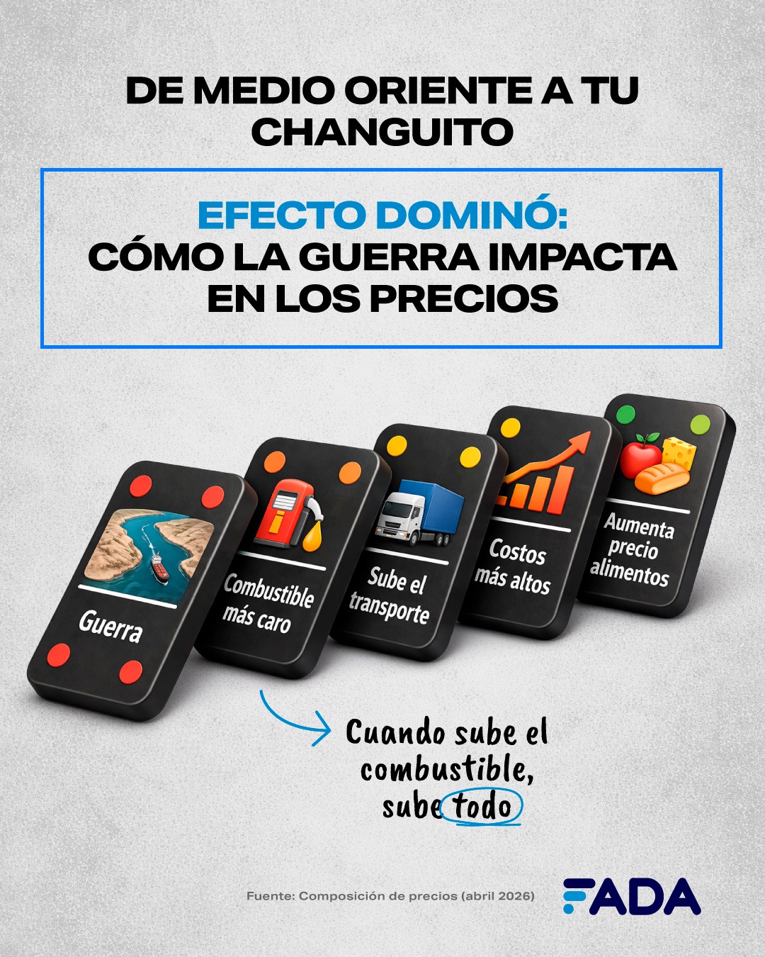 El informe también destaca cómo el contexto geopolítico, específicamente el conflicto en Medio Oriente, impacta directamente en las góndolas locales. El bloqueo del estrecho de Ormuz eleva el precio de los combustibles, lo que encarece los fletes y la logística. Por ejemplo, el transporte representa el 6% del costo de un sachet de leche y el 8% de los costos del productor de trigo.