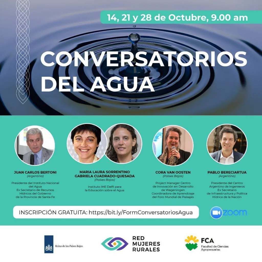 La Red Mujeres Rurales invita a los “Conversatorios del Agua”, un ciclo de diálogos organizados por la Red en alianza estratégica con la Embajada del Reino de los Países Bajos y la Facultad de Ciencias Agropecuarias de la Universidad Nacional de Córdoba.